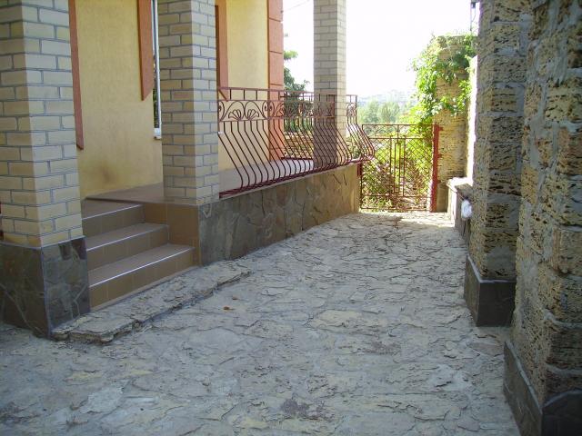 Год постройки 2008 г. Участок 5 сот. Материал - крымский камень (стена 0.7 м толщиной). Отапливаемая площадь 160 кв.м. Общая площадь 223 кв.м. В доме имеются: четыре раздельные комнаты (спальни), два санузла (на 1-м и 2-м этажах), прихожая, гараж (вход в доме), кухя - студия (37 кв.м.), две терассы, балкон 15 кв.м., подсобное помещение, подвал 55 кв.м. Наружная столярка - качественный мталопластик, внутренние двери и лестница - натуральное дерево - ясень. Все в хорошем состоянии. Цена 765 у.е./кв.м.